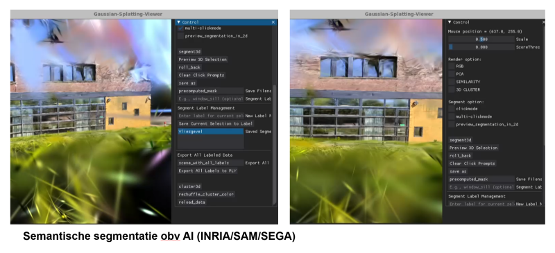 De potentie van Gaussian Splatting reikt ver. Binnen Inholland onderzoeken studenten hoe ze splats slimmer kunnen maken met AI. Denk aan semantische segmentatie: automatisch herkennen dat een cluster punten een deur, raam of trap is. Zo verandert een visueel model in een informatiemodel – een BIM-model dat tegelijk fotorealistisch én intelligent is. Dat opent de deur naar toepassingen als: